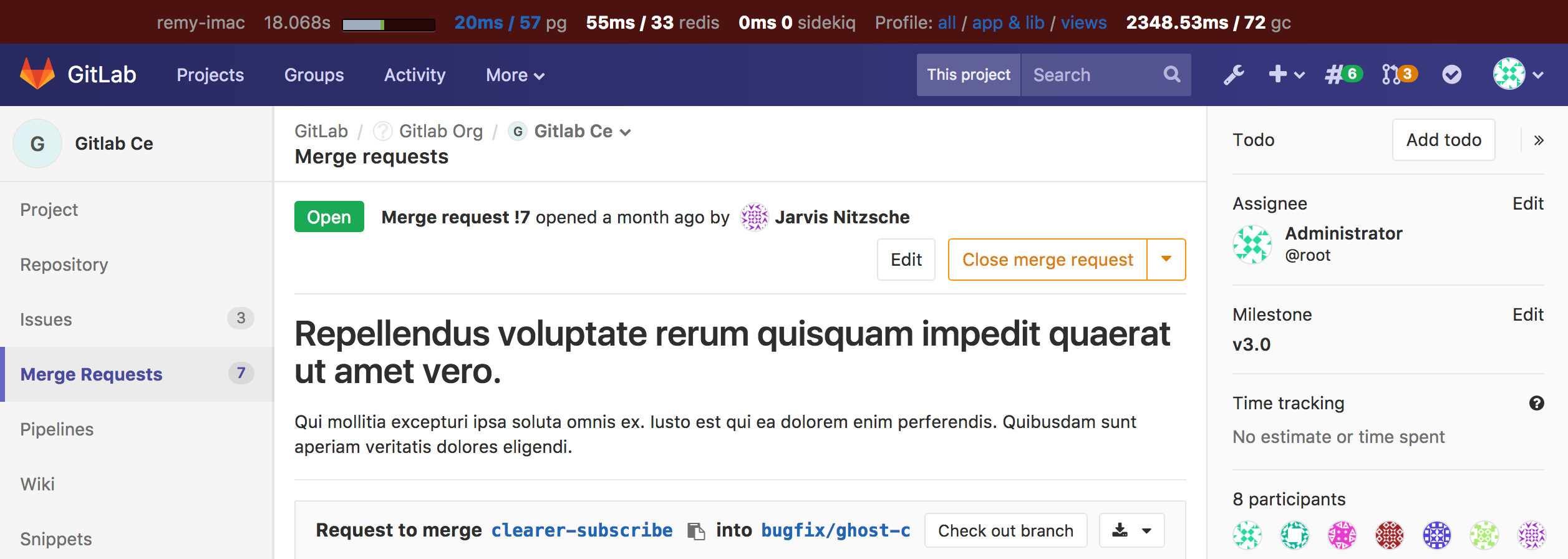GitLab Performance Bar is disabled by default. To enable it for a given group,